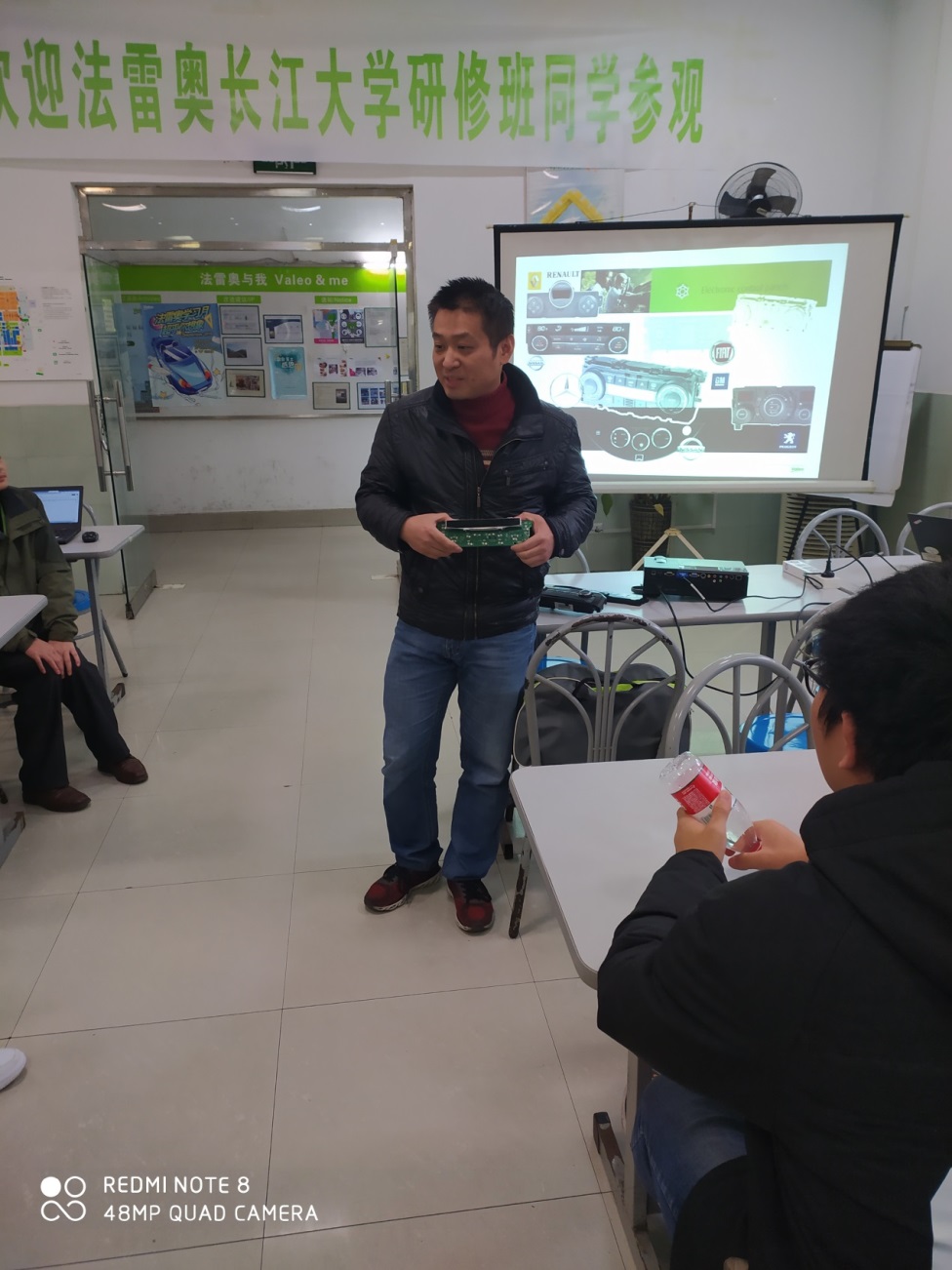 电信学院合作共建教学实习基地挂牌仪式在荆州法雷奥公司隆重举行。法雷奥汽车空调湖北有限公司热希同中国区研发总监杨乾洪先生、研发经理张俊新先生以及电子组经理张印先生、电信学院院长孙祥娥、副院长陈永军、副院长吴爱平、自动化系主任杨友平以及44名2017级学生参加了此次挂牌仪式。