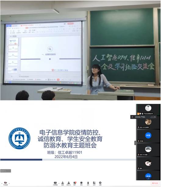 为进一步响应国家疫情防控政策,做实做细疫情防控工作,6月1日至6日,我院各年级各班结合当前毕业生安全离校、防溺水、学生考试诚信教育等相关安全教育要求,采取线上线下相结合的方式召开了疫情防控和安全教育主题班会。