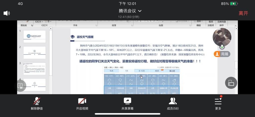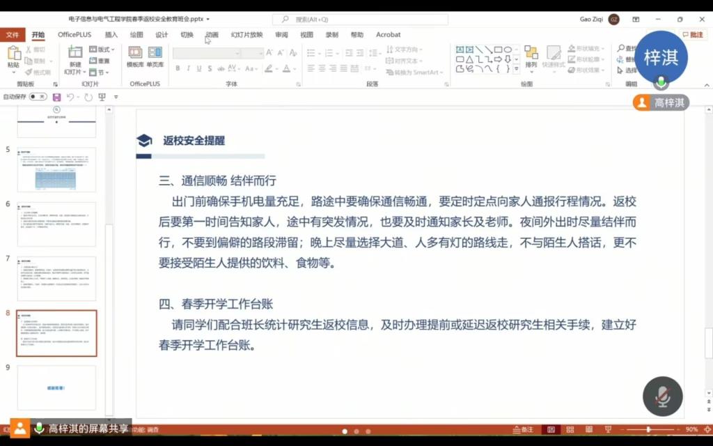 为做好2024年春季开学工作,确保学生安全、有序返校,第一色情网 于2月20日组织全体研究生召开了春季安全返校教育主题班会。 会上,辅导员康玮传达了学校有关春季开学学生返校工作会议精神,对提前返校、延迟返校学生申请审批手续办理、学生返校行程安排报告等事项提了要求,重点提醒学生关注天气变化,妥善安排返校行程,做好应对雨雪等极端天气的准备,并开展了返校交通安全专题教育。 通过此次主题班会,明确了同学们对当前返校手续的要求,提升了同学们返校途中的安全意识。 (审核 张晨露 编辑 颜国琼)