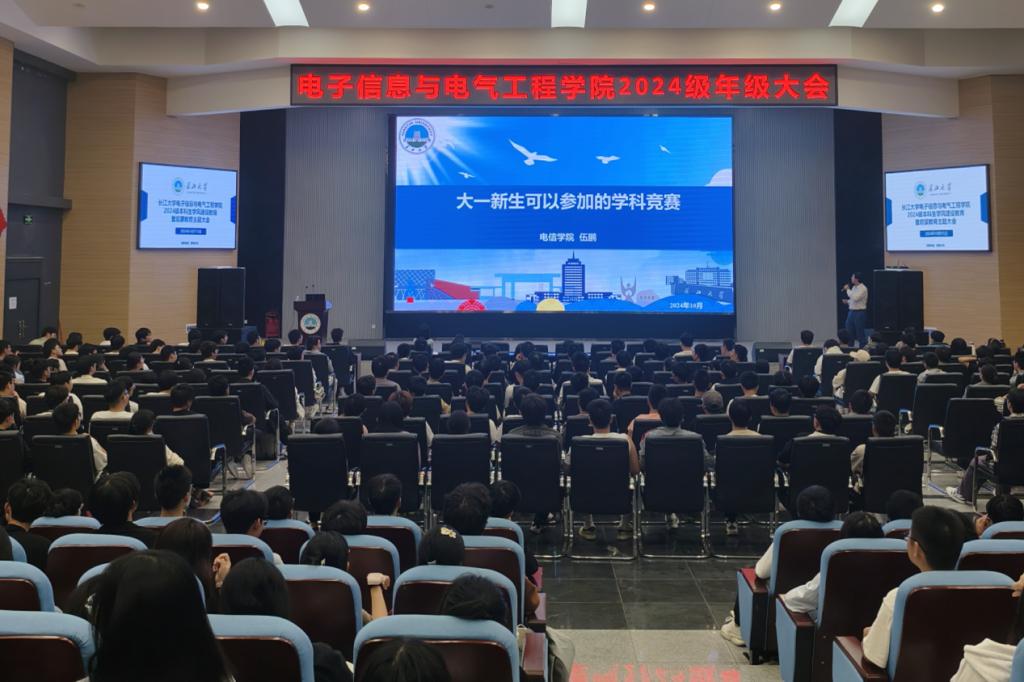会上,朱锐老师围绕生涯规划的目的、方法和意义等方面进行详细讲解,并鼓励同学们积极规划自己的大学生活,勇敢追求自己的梦想。伍鹏老师详细介绍了大一新生可以参加的各类竞赛活动,让新生们对学科竞赛有了更加清晰的认识。