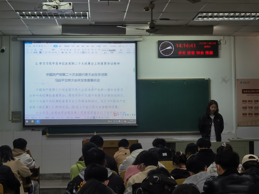 (通讯员 赵怡展)为深入学习宣传贯彻党的二十大精神,提升我院研究生的政治理论素养,深刻认识和全面掌握党的二十大提出的重大理论观点、重大战略思想、重大工作部署,我院研究生特组织开展11月政治理论学习,专题学习党的二十大精神。