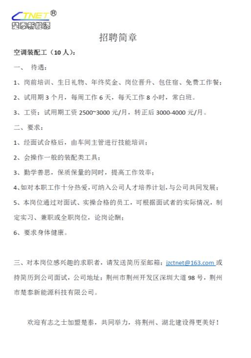 楚泰新能源2020年招聘