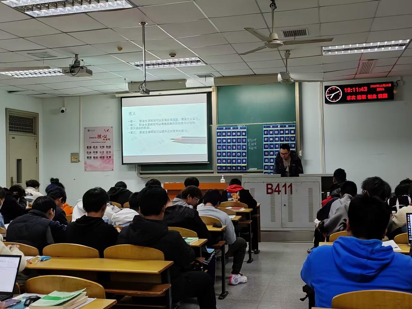 2022年11月,我院面向2022级全体学生举办系列职业生涯规划主题班会。此次活动旨在系统提升大学生职业生涯规划意识,引导大学生合理规划大学生活,树立积极向上的价值观,激发大学生就业热情,为实现充分就业、高质量就业打好基础。