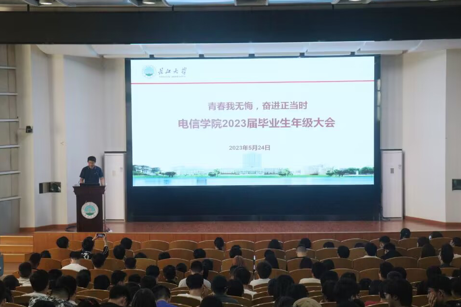 电子信息学院于5月24日组织开展了2023届毕业生“青春我无悔”年级大会。本次讲座主讲人是冯首权,主持人为王齐禄老师。