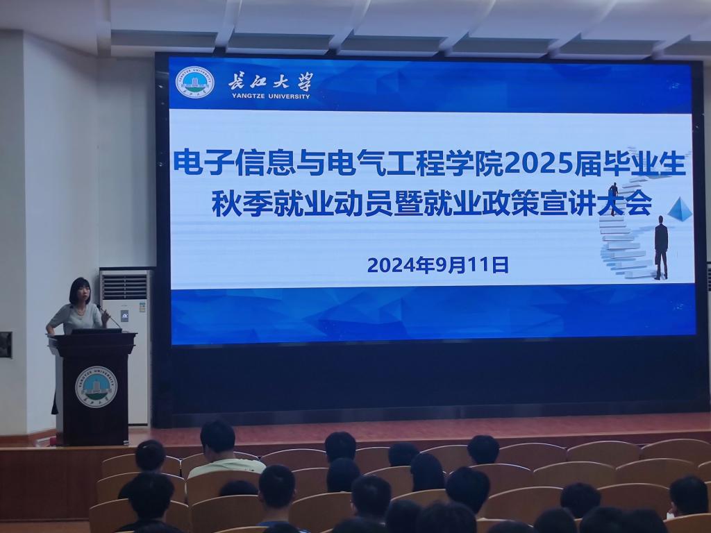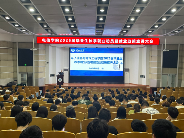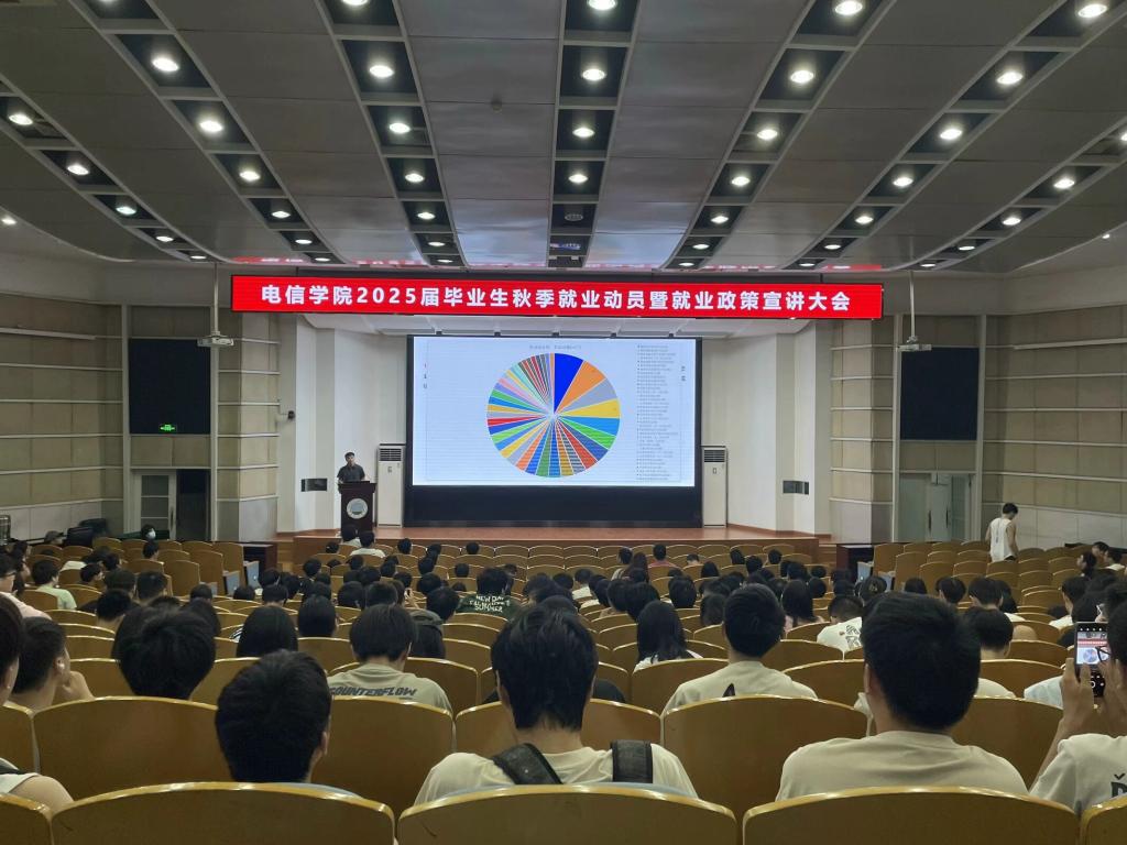 2025届毕业生秋季就业动员暨就业政策宣讲大会在12教405报告厅召开,2025届全体毕业生到会,学院党委副书记张晨露、2021级本科生辅导员李蒙老师、学院就业专干沈马锐老师参加会议。