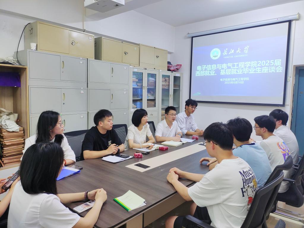 (通讯员 沈马锐)为深入学习贯彻习近平总书记关于青年工作的重要思想,引导广大青年学生积极回应国家号召,投身基层、服务西部。学院于6月16日在学工办党员活动室召开“青春建功新时代 扎根奉献在基层”基层就业毕业生座谈会。学院党委副书记张晨露、毕业年级辅导员李蒙、康玮以及2025届西部就业、基层就业同学和低年级学生代表参加此次座谈会。会议由就业专员沈马锐主持。