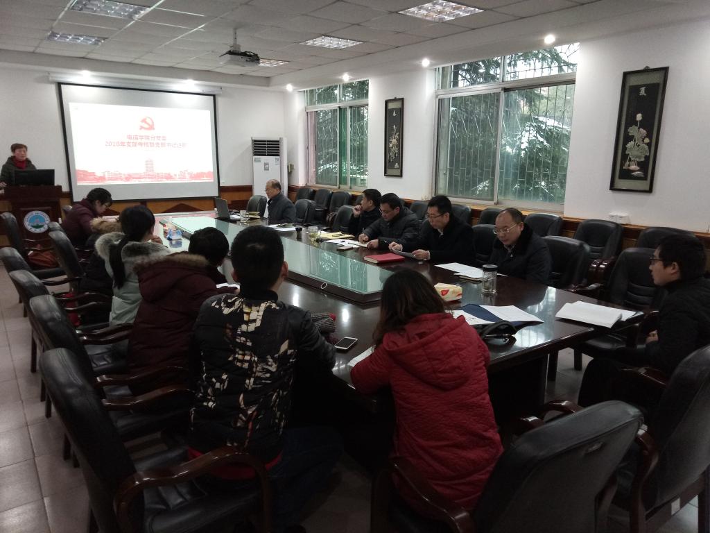 为了更好的贯彻学习十九大精神和习近平新时代中国特色社会主义思想,总结2018年党支部的工作,研究2019年党建工作如何围绕“双一流”建设和中心任务更好的发挥作用,电信学院分党委于2019年1月2日上午8点半至10点,在十教205组织开展支部书记述职会,全体分党委委员、学院领导和支部书记参加,会议由分党委书记王红艳主持