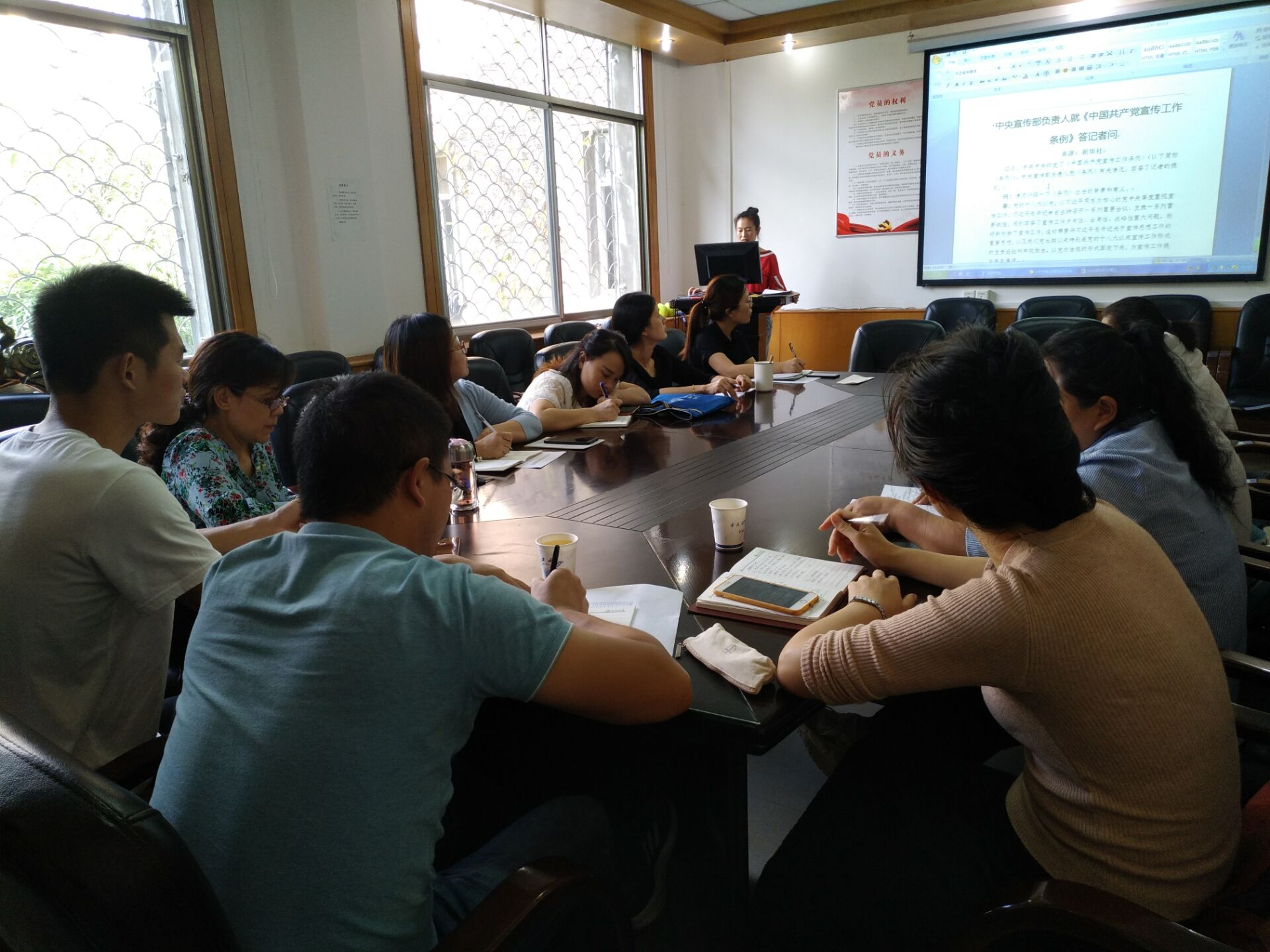与会同志认真学习了中央宣传部负责人就《中国共产党宣传工作条例》答记者问、《关于深化新时代学校思想政治理论课改革创新的若干意见》、《中美贸易摩擦的缘起、影响和未来走向》、《直面现实 负重前行——党委书记朱业宏在中层干部培训研讨会上的讲话》、《不忘初心 牢记使命 扎实推进“双一流”建设——校长冯征在2019年暑期工作研讨会上的讲话》、《第一色情网