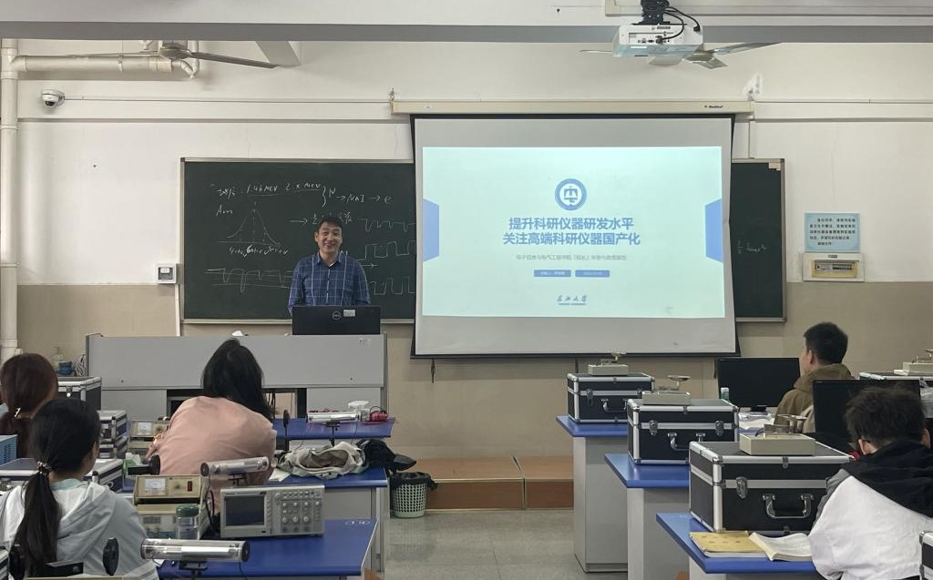 课堂上,罗明璋向同学们介绍了当前我国科研仪器生产与进口现状,分析了我国科研仪器研制的短板,还分享了业内专家关于“做强国产科研仪器”的几点讨论和建议:一是要考虑用户和应用市场需求,提高科研仪器的实用性;二是要集中有限资金,培育大型仪器企业,增强国产仪器市场竞争能力;三是要完善高校科研院所考核评价制度,保障工程技术人才成长。他还鼓励同学们着眼党和国家发展需要,努力深耕专业,发扬电信学子踏实、奉献、实干的精神风貌,不断为社会进步和科技发展发光发热。