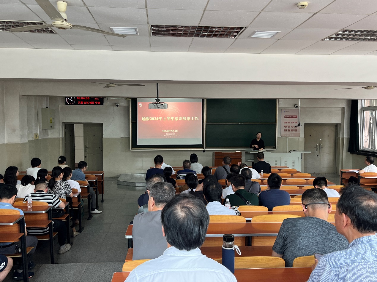 7月4日下午,学院在主教108召开教职工大会,总结上半年工作开展情况,布置暑期点工作会上开展了教职工政治理论学习和警示教育党委书记郭梅主持会议。