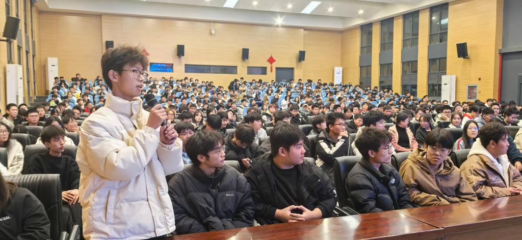 “怎样才能加入院长的实验室?”“人工智能专业知识面广泛,您建议主攻哪个方向?”在交流环节,同学们热情高涨,纷纷举手提问。院长仔细聆听、耐心解答,会场欢笑声和掌声不断。