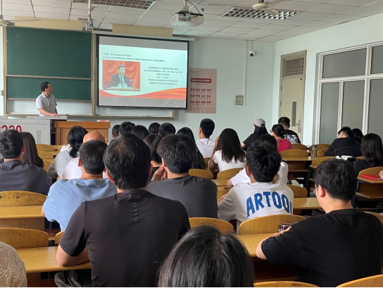 大会第一阶段开展主题教育专题党日活动。首先由党建秘书李蒙带领全体党员重温入党誓词,大家举起右手,庄严宣誓,铿锵恢弘的誓词,震撼在场每一位党员的心灵,铮铮誓言彰显了每一位党员不忘初心、矢志奋斗的坚定决心。随后,党委副书记郭启炜为全体毕业生党员上“最后”一堂党课,开展学习贯彻习近平新时代中国特色社会主义思想主题教育专题培训。他以《高度重视学习贯彻习近平新时代中国特色社会主义思想主题教育》为题,从习近平新时代中国特色社会主义思想的主要内容、重要指导作用、如何贯彻落实等几个方面进行讲授,引导党员们深刻认识开展主题教育的重大意义,自觉运用其中的立场、观点、方法指导工作、开展学习。