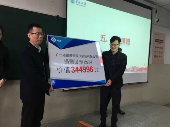 副院长李涛代表学院接受了粤嵌公司捐赠设备,约35万元。