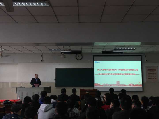 院长熊晓东发表动员讲话,他强调希望通过此次校企合作,提升电信学子的动手能力和实践能力,也希望电信学子在平常学习的过程中,不仅注重学好理论知识,也要注重自己创新能力的提高。