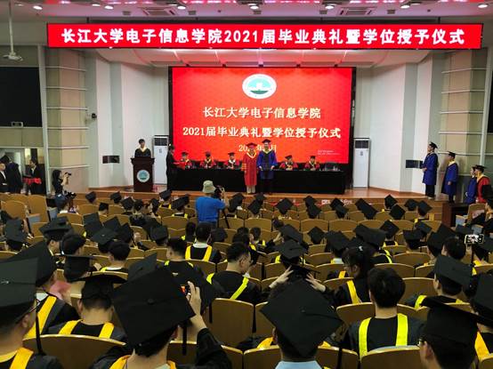 电子信息学院于东校区12教405学术报告厅举行2021届毕业生毕业典礼暨学位授予仪式,学院党委书记刘逸,院长孙祥娥,副院长吴爱平、陈永军、蔡昌新,导师代表张正炳、魏勇、郑恭明,各系系主任、毕业班班主任,学院全体辅导员出席本次会议,2021届本科及硕士毕业生与会,会议由学院党委副书记郭启炜主持。