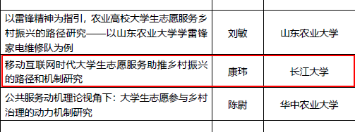 电子信息学院申报的《移动互联网时代大学生志愿服务助推乡村振兴的路径和机制研究》项目获得立项。