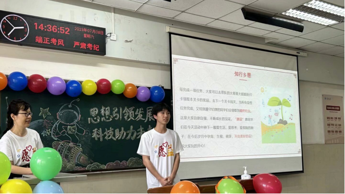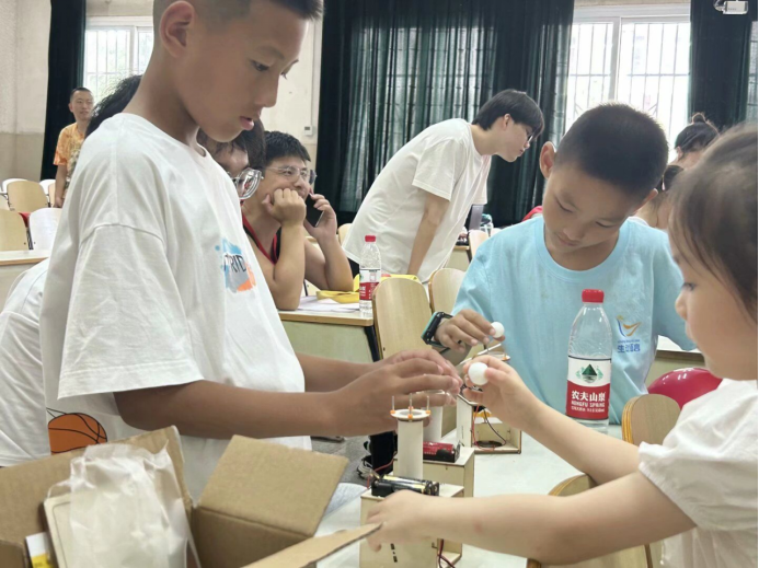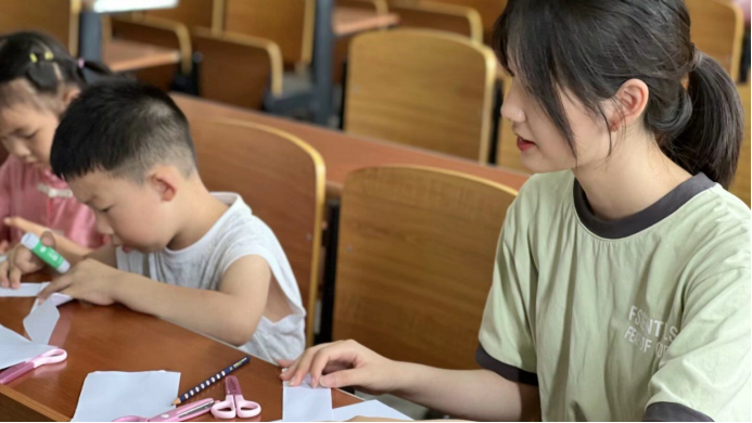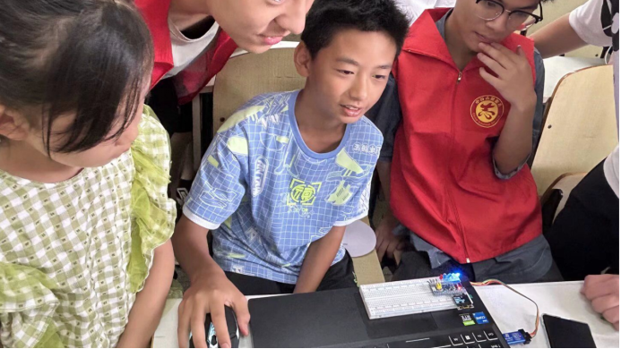的研究生和本科生结合学科优势,通过开展人工智能技术科普、儿童创意编程、趣味科学实验,展示智能小车、无人机等竞赛作品,促进中小学生对人工智能的了解和认知,通过音乐、舞蹈、手工剪纸画等形式开展古诗词、经典古文、人文典故、基本常识的教学,帮助他们感受中华优秀传统文化的魅力。