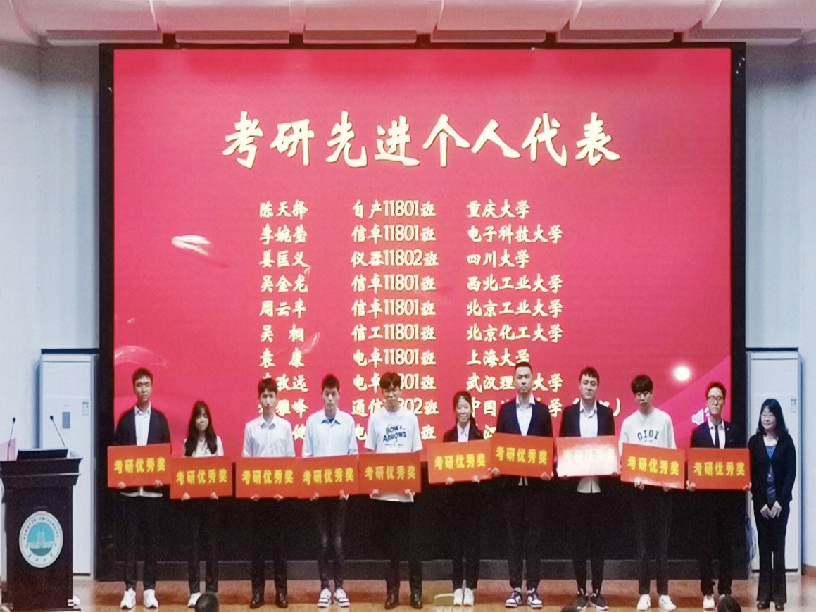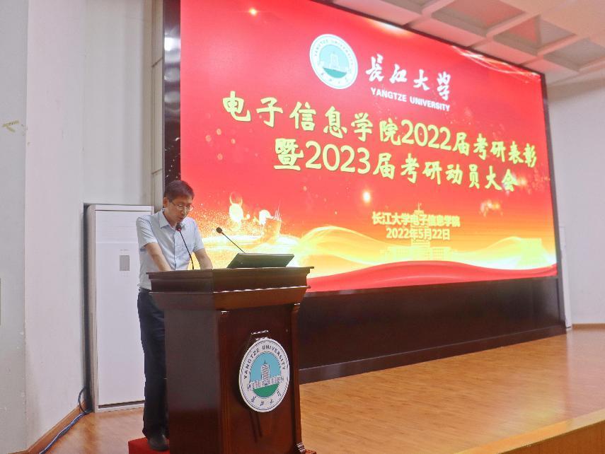 (通讯员 李月梅 胡桐/文 胡桐/摄)研途有你!一“研”为定!5月22日晚,电子信息学院于东校区12教405报告厅开展2022届考研表彰暨2023届考研动员大会。电信学院全体院领导出席本次会议,2022届考研先进个人代表、485名2023届本科生共500余人通过线上、线下共同参会。会议由学院2023届本科生辅导员沈马锐主持。