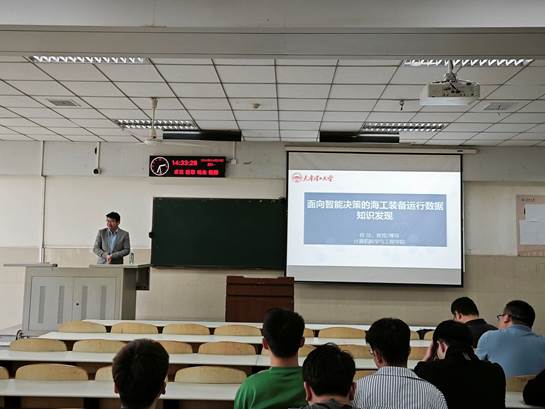 电信学院优秀校友、天津理工大学计算机学院程徐教授回到母校,做了题为《面向智能决策的海工装备运行数据知识发现》的学术报告。报告由科研副院长魏勇主持,学院中青年教授骨干及100余名研究生参加。报告地点在12教102。