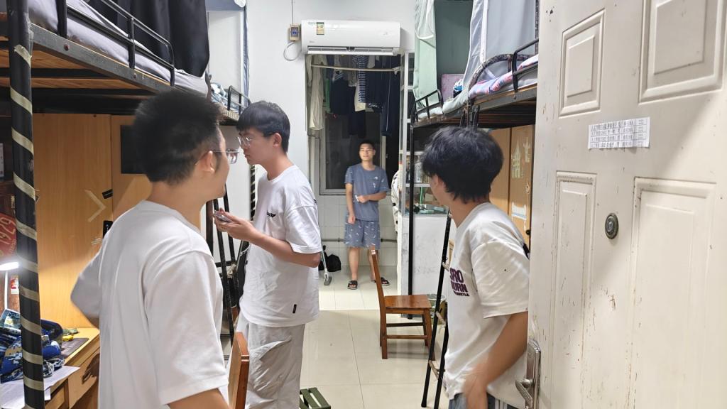 班会结束后,学院领导、班主任以及辅导员一行深入新生宿舍,走访慰问刚刚安顿下来的新同学。“家乡是哪里的?”“对学校的饮食和住宿还习惯吗?”“生活上有没有什么困难?”每到一个寝室,领导老师们都与新生进行亲切交谈,细致地了解他们的入住情况和生活需求,耐心解答同学们的各种问题,并叮嘱大家要尽快适应新环境,团结室友,注意人身和财产安全,以饱满的精神状态迎接接下来的军事训练和大学课程学习。亲切的问候和暖心的话语让新生们倍感温暖,纷纷感谢学院的关心。