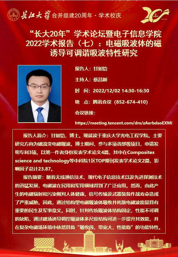 “长大20年”学术论坛暨电子信息学院2022学术报告(七)
