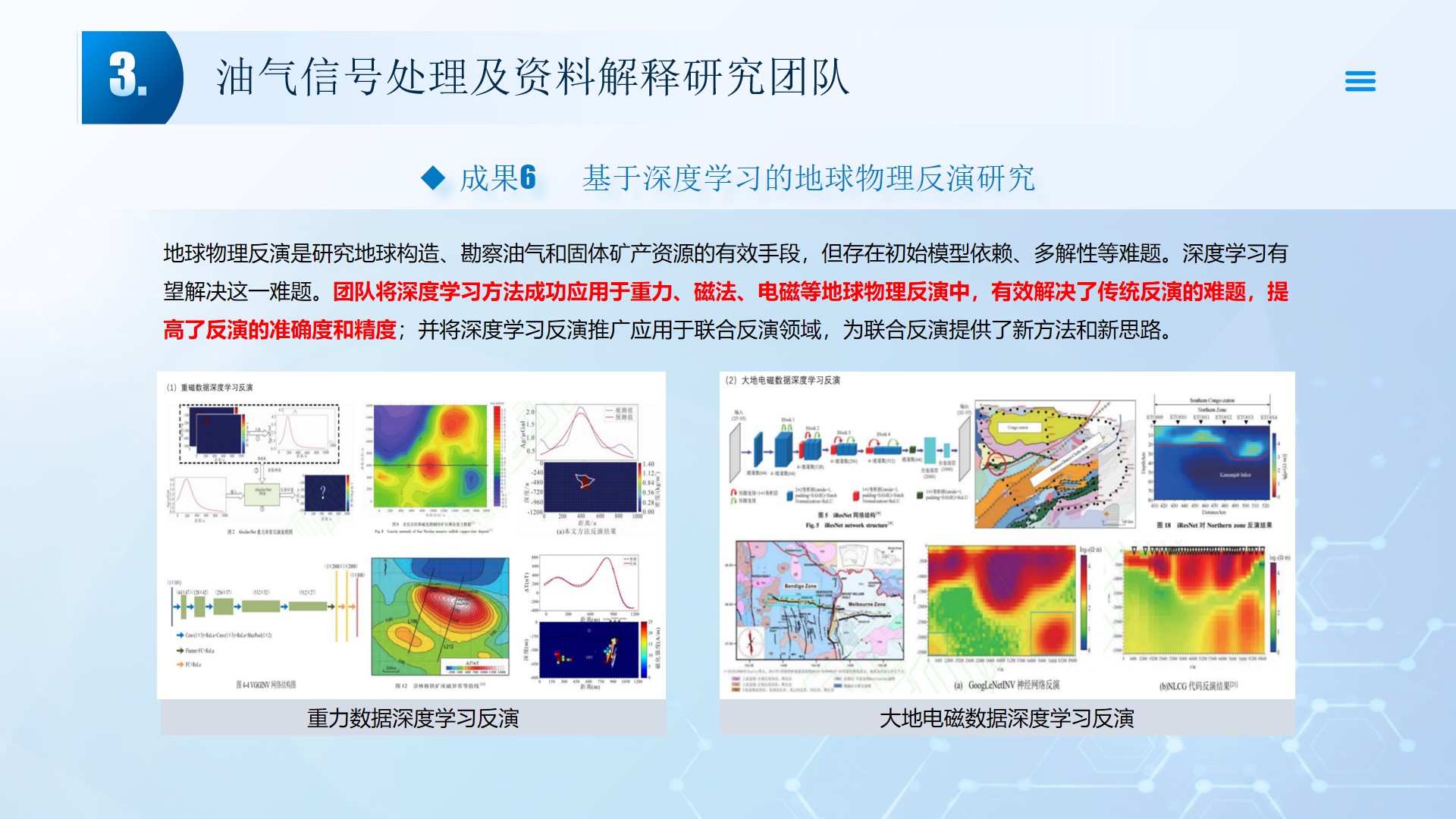 团队长期从事地震资料解释、深水浅层地质灾害钻前预测、地质工程一体化应用等方向的研究。先后主持或参与国家自然科学基金面上项目2项,承担国家科技重大专项4项,省部级及油田委托项目《基于GPU的海量地震数据并行可视化技术研究》、《华北油田地震反射弱信号储层预测技术方法研究》、《云平台下的智慧农业系统》等其他各类科研项目100余项。出版学术专著和教材10部,先后在《IEEE Access》、《IET Image Processing》、《IET Biometrics》、《IET Signal Processing》、《Electronics Letters》、《Sensors》、《计算机应用》等国内外主要学术刊物上公开发表学术论文200余篇。授权国家发明专利20件、实用新型专利8件、软件著作权15件,获得各类科技进步奖励5项。 指导国家级大学生创新与创业项目5项,连续3年入选国创年会(2019-2021),3项被评为优秀。指导研究生和本科生参加挑战杯和互联网+大赛获奖5项,其中包括国赛铜奖2项,省一等奖2项,省二等奖3项。
